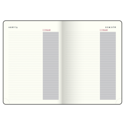 Щоденники Buromax - це завжди широкий вибір самих різних обкладинок, фактур, кольорів та форматів. Ми знайдемо підхід до серця будь-якого покупця! Тверда обкладинка щоденника BRAVO виготовлена з гладкої штучної шкіри, з поролоном. На лицьовій стороні - тиснення року сліпим методом. Тонування зрізу золотом додає вишуканий акцент. Класичний та стриманий дизайн стане відмінним доповненням корпоративного стилю компанії. Великий формат щоденника дозволяє не тільки планувати, але й робити змістовні нотатки та записи. Формат А4 336 сторінок Внутрішній блок: офсетний папір кремового кольору щільністю 70 г/м² Закладка-лясе в колір обкладинки Перфоровані куточки аркушів Друк блоку в 2 кольори: сірий і бордовий Дві мови блоку: українська, англійська Мапи України та Європи на форзацах Індивідуальна упаковка: картонна коробка Структура внутрішнього блоку: Сторінка для внесення особистої інформації Календарі на 2025 - 2028 роки Планінг на 2026 рік Інформаційно-довідковий блок: національні, релігійні, професійні свята та пам'ятні дати, знаки зодіаку, телефонні коди мобільних операторів та обласних центрів України, літерні автомобільні коди країн, таблиця відстаней між обласними центрами України, довідник систем вимірювання, міжнародні знаки відповідності, знаки догляду за одягом Датована сторінка на кожен день року з організатором часу від 7:00 до 21:00, календарем на поточний/наступний місяць, позначенням дня тижня, знаку зодіаку, іменинників Алфавітна книга для внесення контактів Щоденник BUROMAX - незамінний помічник в плануванні Вашого робочого дня, перевірений часом! На цій моделі щоденника можливе тиснення сліпим методом і методом фольгування.