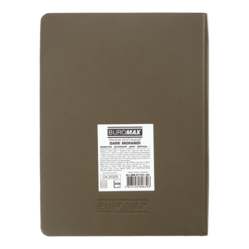 Щоденники BUROMAX - це завжди широкий вибір самих різних обкладинок, фактур, розмірів і кольорів. Ми знайдемо підхід до серця кожного покупця! Гнучка обкладинка зі штучної шкіри щоденника DARK MORANDI виконана з приємного на дотик матеріалу в насиченому кольорі модної палітри "моранді" та має оригінальне сліпе тиснення року на лицьовій стороні. Гармонійно доповнює дизайн тонований в колір обладинки зріз внутрішнього блоку. Формат А5 336 сторінок Внутрішній блок: офсетний папір кремового кольору щільністю 70 г/м² Закладка-лясе в колір обкладинки Перфоровані куточки аркушів Друк блоку в 2 кольори: сірий і бордовий Дві мови блоку: українська, англійська Форзаци в колір обкладинки Індивідуальна упаковка: картонна коробка Структура внутрішнього блоку: Сторінка для внесення особистої інформації Календарі на 2025 - 2028 роки Планінг на 2026 рік Інформаційно-довідковий блок: національні, релігійні, професійні свята та пам'ятні дати, знаки зодіаку, телефонні коди мобільних операторів та обласних центрів України, літерні автомобільні коди країн, таблиця відстаней між обласними центрами України, довідник систем вимірювання, міжнародні знаки відповідності, знаки догляду за одягом Датована сторінка на кожен день року з організатором часу від 7:00 до 21:00, календарем на поточний/наступний місяць, позначенням дня тижня, знаку зодіаку, іменинників Алфавітна книга для внесення контактів Щоденник BUROMAX формату А5 - це вибір, перевірений часом, найпопулярніший формат для незамінного помічника в плануванні Вашого робочого дня! На цій моделі щоденника можливе тиснення як сліпим методом так і методом фольгування.