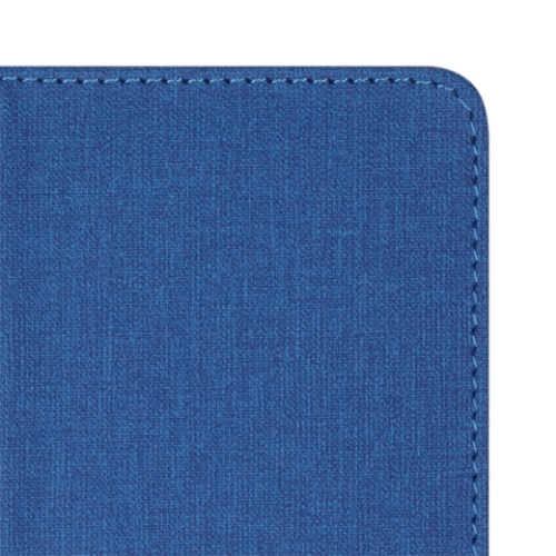 Жорстка обкладинка з штучної шкіри з поролоном щоденника ELEGANTE виконана у лаконічному та функціональному дизайні, що поєднує матеріал з фактурою тканини та вставку з гладкої шкіри. Щоденник має петлю для розміщення ручки. Елементи оздоблення - сліпе тиснення відбитку ручки, що ніби вказує на можливість закріпити її на обкладинці, та декоративний шов по периметру і на стику фактур. Гармонійно доповнює дизайн нанесення року на зрізі внутрішнього блоку.