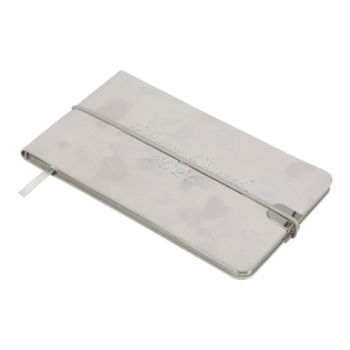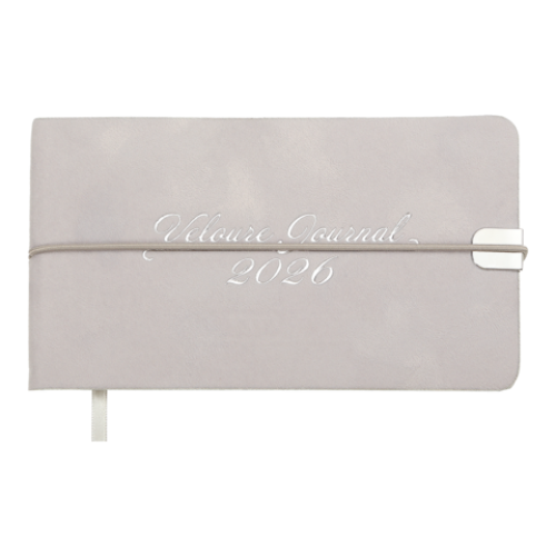 Гнучка обкладинка щотижневика VELOUR виконана з штучної шкіри з виразним оксамитовим покриттям. Дві функціональні металеві шильди на лицьовій та зворотній стороні обкладинки з поглибленнями для поперечної гумки забезпечують надійну фіксацію щоденника в закритому стані. Дизайн збагачує тонований срібним кольором зріз та тиснення срібною фольгою року на лицьовій стороні обкладинки. Кишеньковий розмір щотижневика робить його постійним супутником свого власника, він не займе багато місця навіть у маленькій сумочці і завжди буде під рукою.