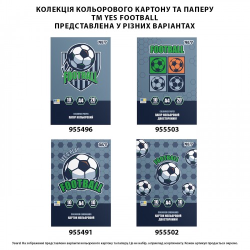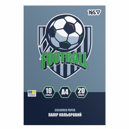 Папір кольоровий А4 20арк 10 кольорів YES 955496 Football, на скобі (50) /955496/