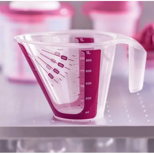 На поверхню кувшинчика під кутом нанесені мірні шкали, це зроблено для того, щоб в процесі використання завжди було видно, скільки рідини ви вже вилили, і скільки залишилося. Зручність використання цього кувшинчика по достоїнству оцінять і лівші і правші, завдяки тому, що вимірювальна шкала нанесена з обох сторін.