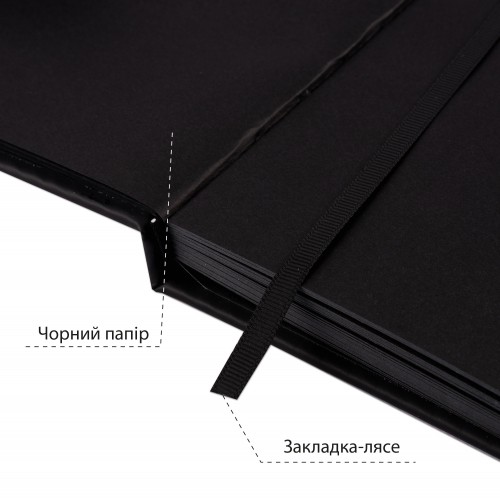 Скетчбук ТМ SANTI підходить для роботи білою гелевою ручкою чи олівцем, спеціальними кольоровими ручками, олівцями або маркерами для малювання на чорному папері, пастельними крейдами чи олівцями тощо.