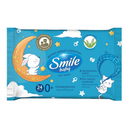 Серветки вологі Smile Baby 24шт Екстракт алое, дитячі гіпоалергенні (42)