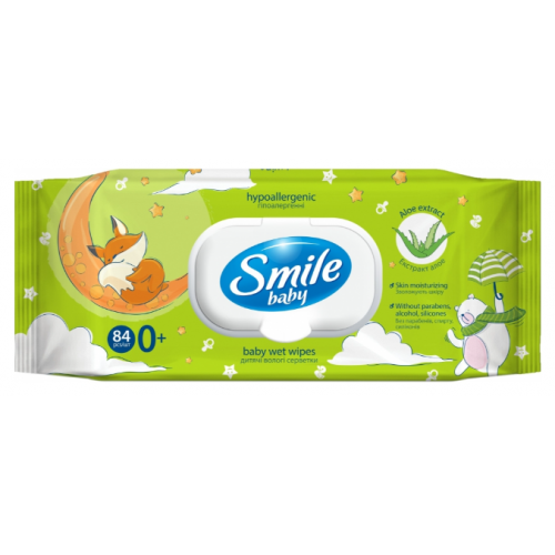 Вологі серветки Smile (Смайл) Baby з алоє створені з любов'ю до вашого малюка. Основні переваги: ??м'яка і міцна текстура серветок забезпечує ніжний догляд за чутливою шкірою дитини завдяки ретельно підібраному складу лосьйону, що просочує, вологі серветки безпечні для дитячої шкіри серветки гіпоалергенні, мають збалансований pH, без спирту алое в складі просочує лосьйону а також забезпечує глибоке зволоження.
