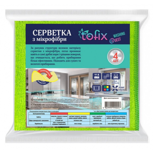 Серветка д/прибирання Tofix мікрофібра, універсальна 35*35см (4шт.в уп.) (кольорова) (30) /10026/