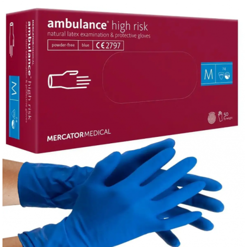 Рукавички гумові Ambulance 50шт. латексні M (середні) сині, супер щільні 69256