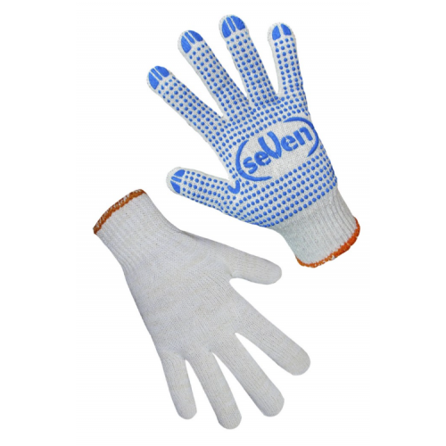 Основні якості: захисні робочі рукавички, призначені для захисту рук від виробничих забруднень та механічних пошкоджень. Завдяки ПВХ-крапці на внутрішній частині долоні рукавички стали стійкішими до стирання, а також підвищилась їх зносостійкість. Манжет подовжений, захищає руку від пошкоджень. Край манжету оброблений оверлоком. Рукавички не мають швів, добре облягають руку та не викликають алергічних реакцій.