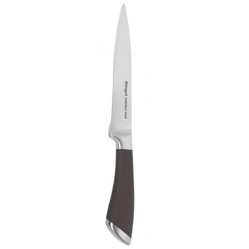 Ніж Ringel Exzellent - добре збалансований ніж правильної геометричної форми з цільнолитим корпусом та гумовою ручкою. Леза ножа виготовлено з нержавіючої сталі Мартенситна нержавіюча сталь (сталь AISI 420), з якої виготовлено лезо ножа, має високу міцність і корозійну стійкість. Підвищений вміст вуглецю надає оптимальної жорсткості 53 за шкалою Роквелла. Суцільнолитий корпус Ціліснолитий корпус ножів Excellent забезпечує максимально тривале надійне використання виробів на вашій кухні. Прогумована ручка Антиковзний ефект, навіть у мокрих руках, забезпечений завдяки термопластичній гумі (TPR), одягненій на ручку ножа. Приємні тактильні відчуття при нарізанні продуктів та легке очищення від забруднень – додаткові бонуси при використанні серії Excellent. Ніж універсальний Один із найбільш затребуваних ножів на сучасній кухні. Постійно під рукою під час приготування. Використовується для подрібнення овочів, і для швидкого сервірування закусок. Достойно справляється практично з будь-якою роботою. Ringel - бренд високоякісного посуду та аксесуарів для здорової смачної їжі. Торгова марка Ringel - приклад найкращого досвіду європейських виробників посуду та вміння забезпечити максимум якості за прийнятною ціною. Посуд бренду Ringel - ідеальний помічник на вашій кухні, щодня надихатиме вас на справжні кулінарні шедеври. Ringel поєднує найкращий досвід, сучасні технології та актуальні тенденції у сфері виготовлення металевого посуду. Вироби дарують споживачеві найкраще поєднання ціни та якості за умови, що якість завжди була, є та буде на першому місці. Асортимент продукції бренду Ringel повністю задовольняє потреби посуду та приладів найвибагливішої господині. Зовнішній вигляд всього посуду ТМ Ringel витриманий в універсальній концепції стриманого та лаконічного дизайну, що дозволяє самостійно комбінувати поєднання посуду на кожній кухні.