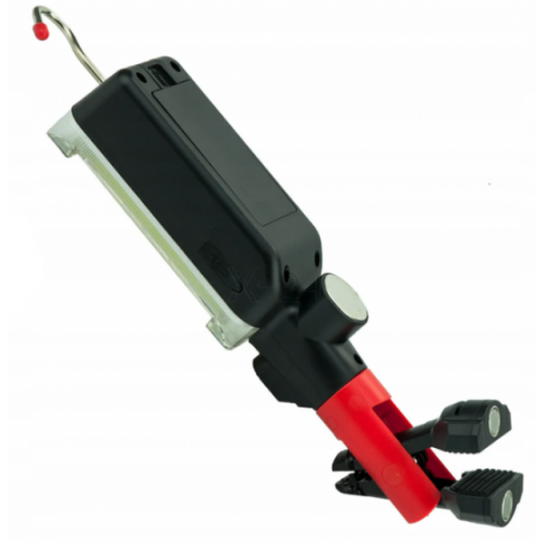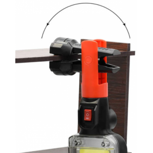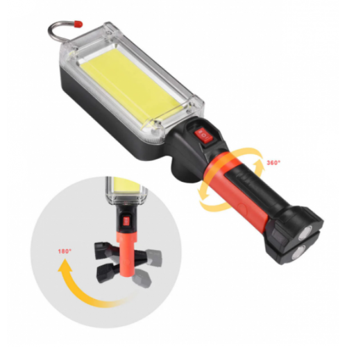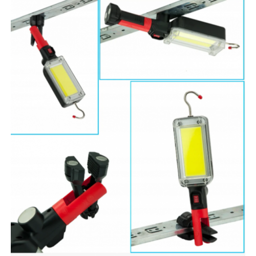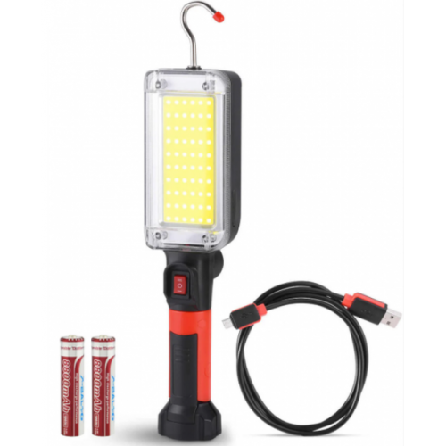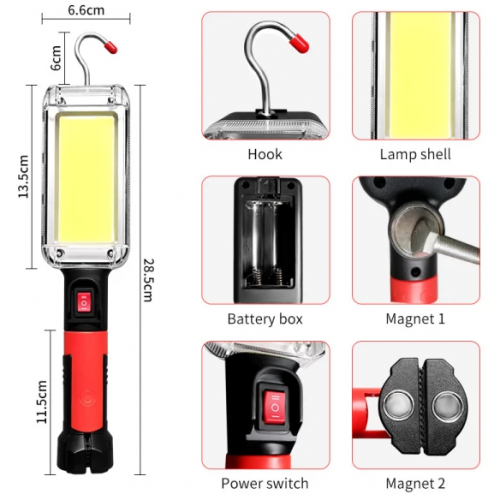 Переносна лампа-ліхтар потужністю 20 Вт насамперед цікава своєю універсальністю. Її можна підвісити на гачок у будь-якому місці, прикріпити до металевої поверхні за допомогою дуже потужних магнітів, розміщених на тильній та торцевій частині ліхтаря, а також закріпити вбудованою прищіпкою в ручці у важкодоступних місцях. Завдяки ергономічному дизайну дуже зручно тримати її в руці. Корпус прямокутної форми має компактний розмір. На передній частині пристрою розміщено великий світлодіодний блок, який займає, по суті, весь простір. Діоди COB дають дуже яскраве свічення. За електроживлення освітлювального приладу відповідальний акумуляторний блок з двох елементів типу 18650 3.7V