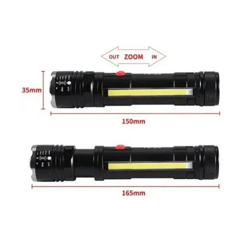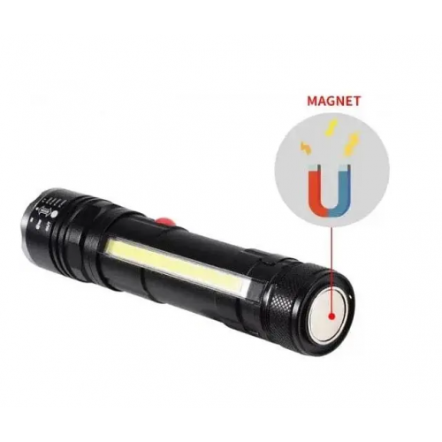 Ліхтарик T6-26 (T6+COB) zoom +магніт, microUSB,18650, кліпса, 4режима