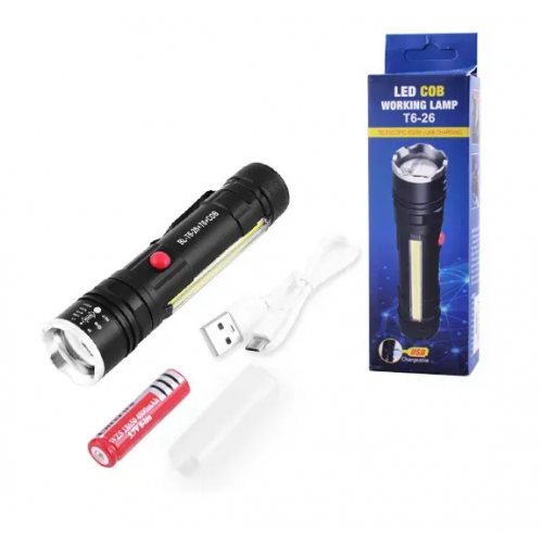 Ліхтарик T6-26 (Т6+COB, zoom, micro USB, АКБ*18650)