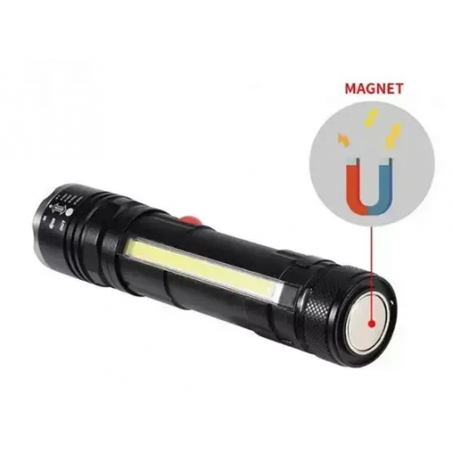 Ручний ліхтар T6-26 — універсальний та зручний у використанні ліхтар із фокусуванням променя, додатковим бічним світлом і магнітним кріпленням. Поєднує потужний основний діод T6 та боковий COB-світильник, що дозволяє використовувати його як класичний ручний ліхтар або як робоче освітлення. Міцний корпус з алюмінієвого сплаву стійкий до вологи, а можливість живлення від акумулятора або батарейок робить модель практичною для різних умов. Магніт і карабін забезпечують зручне кріплення під час ремонту, в дорозі чи на відпочинку.
