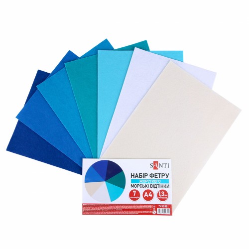 Фетр листовий (поліестер) 21х30см SANTI 743258 180г/м, відтінки моря (жорсткий) (7арк.) (ціна за уп.) /743258/