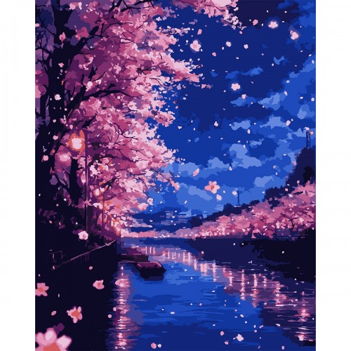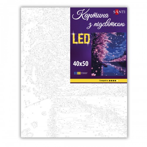 Картина за номерами SANTI Цвітіння сакури 40х50 см LED підсвітка