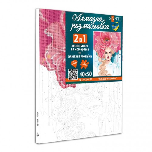 Картина за номерами з алмазною мозаїкою SANTI Дівчина-троянда, 40*50 см.